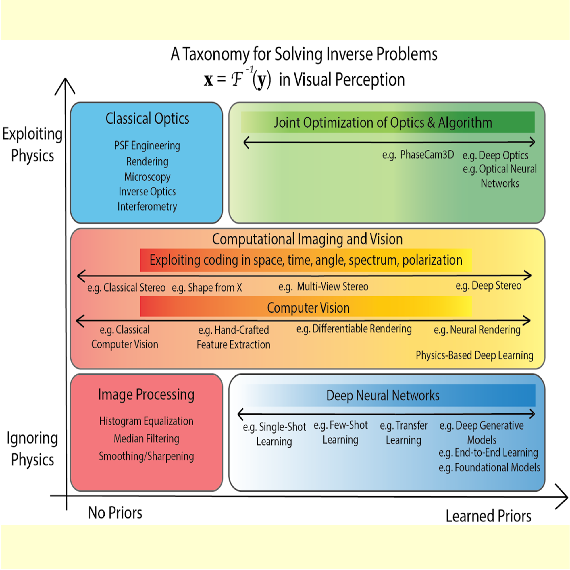 Physics vs. Learned Priors: Rethinking Camera Design for Task-Specific Camera and Algorithm Design